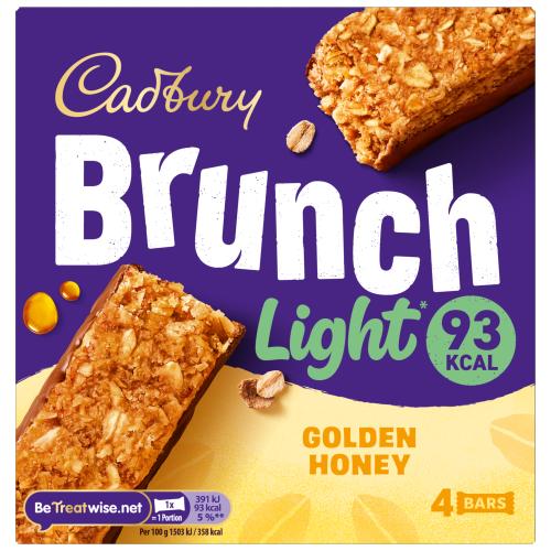 (1) 45% less sugars than standard Cadbury Brunch Oats bars.; 93 kcals per bar; Light (1)