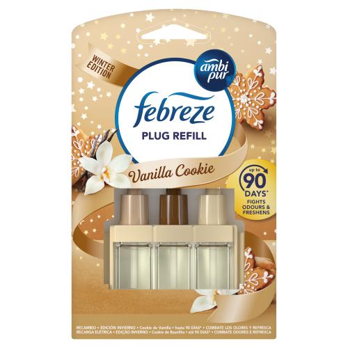 Continuously fights odours and alternates between 3 complementary scents for noticeable freshness, Lasts up to 90 days (if used 12h per day at low setting), Comforting vanilla and creamy woods with notes of white floral and powder, Unique Febreze OdourClear Technology doesn't just mask but truly fights odours, leaving a fresh scent, 3Volution alternates the complementary scents every 45 minutes so you keep noticing the freshness, Febreze Plug In Air Fresheners For Home available in a wide range of high quality fragrances