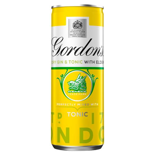 Gordon's Premium Distilled Gin with a spot of elderflower is perfectly mixed with tonic and ready to drink in a 250ml can.