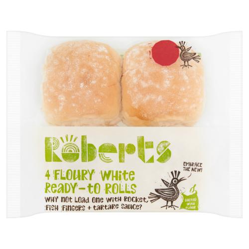 4 white floury bread rolls