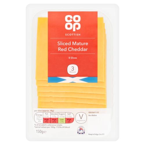 Co-op Scottish Sliced Mature Red Cheddar 8 Slices 150g