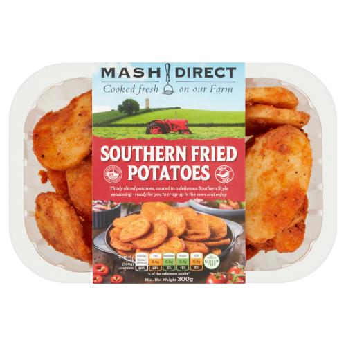Thinly sliced potatoes, coated in a delicious Southern Style seasoning - ready for you to crisp up in the oven and enjoy