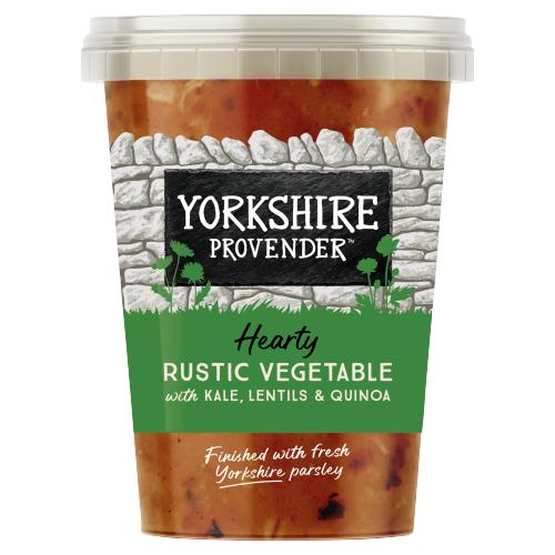 Water, Vegetables (31%) (Kale, Onion, Swede, Cabbage, Carrot, Celery, Leek, Celeriac (Celery)), Tomato (14%), Concentrated Tomato Juice, Tomato Paste, Dark Speckled Lentils (2.5%), Rapeseed Oil, Red Quinoa (1.5%), Vegetable Bouillon [Salt, Potato Starch, Dried Vegetables (Celeriac (Celery), Onion, Garlic, Tomato), Spices (Celery, Turmeric, Black Pepper, Mace, Nutmeg), Herbs (Lovage, Parsley)], Fresh Yorkshire† Parsley, Thyme, Garlic Purée, Black Pepper, Chilli Powder, †Subject to seasonal availability approx. May to October,
