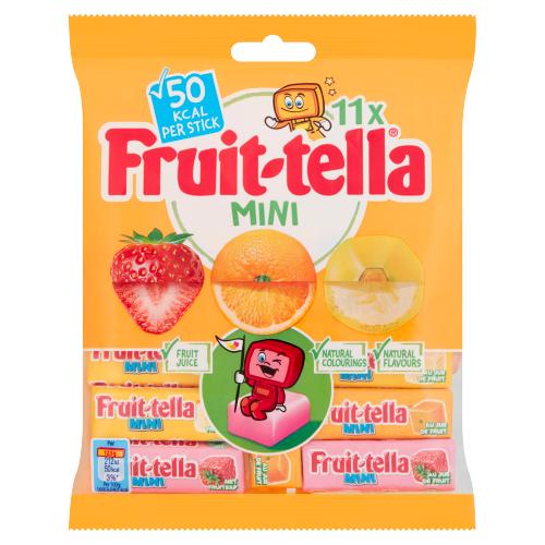 Mini offers 11x Mini Sticks of 3x Fruittella Chews in Strawberry, Orange and Banana Flavours!
