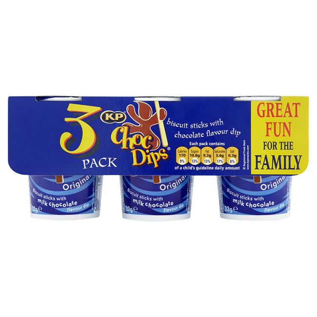 Each pack contains Calories 170 9%, Sugars 10.8g 13%, Fat 9.3g 13%, Saturates 3.4g 17%, Salt 0.3g 8% of a child's guideline daily amount