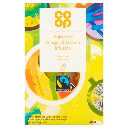 20 Fairtrade Ginger and Lemon herbal infusion bags.