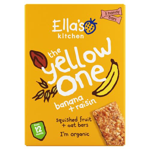Hello, I'm 5 individually wrapped organic banana + raisin squished fruit + oat bars. I'm made from yummy oats, bananas + raisins. I'm a handy snack full of good stuff to make little tummies happy!