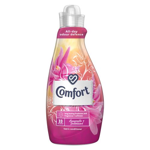 Comfort Honeysuckle & Sandalwood Fabric Conditioner gives your clothes long-lasting freshness and fragrance + softness, With a top note of tangerine, mid note of honeysuckle and base note of vanilla, Comfort Honeysuckle & Sandalwood Fabric Conditioner has a luxurious fragrance, With our fabric conditioner, be whisked away to an evening on an exotic island – the aroma of this luxurious, alluring scent will make you feel like a movie star, whatever the occasion, Let the fresh fragrance burst of Comfort take you to a happy place because when your clothes smell good, you feel good – all day long, This fabric conditioner provides all-day odour defence for your clothes, helping to protect against unpleasant smells, Comfort Fabric Conditioner helps to smooth the fibres of your clothes, making them feel extra soft