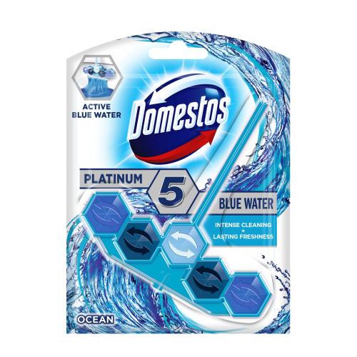 Domestos Platinum 5 Toilet Rim Block Blue Water Ocean 55 g 1 pack