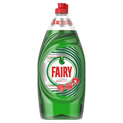 Fairy Platinum Quickwash Original washing up liquid helps you get out of the kitchen faster by offering you faster & effortless cleaning. Each Fairy drop quickly penetrates and weakens tough greasy residues on dishes, leaving impeccable results even against the toughest grease cleaning challenges.