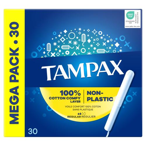 Tampax Regular tampons with cardboard applicator help you feel clean and confident. They are non plastic tampons and free from fragrances and dyes. Tampax tampons have an absorbent core and a protective skirt for additional back-up protection. Their cardboard applicator features an anti-slip grip for easy insertion and the tampon core has a 100% cotton comfy layer. Tampax Regular tampons with cardboard applicator are for light to medium flow days during your period. Tampax tampons have been gynaecologically tested. They have also been independently tested for harmful substances by Oeko-Tex. Feel clean and confident. Try Tampax Pearl Compak, our best option for comfort and protection across Tampax line up. For more information about our products please visit our website.