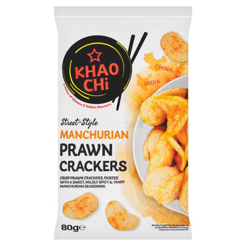 A fusion of Chinese & Indian flavours, Crisp Prawn Crackers, Dusted with a Sweet, Mildly Spicy & Tangy Manchurian Seasoning