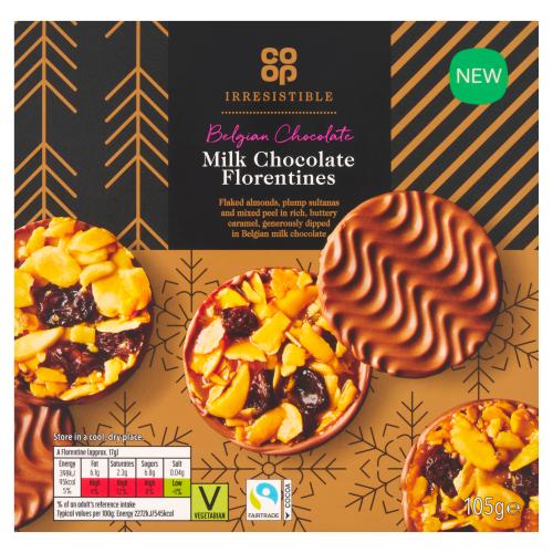 Co-op Irresistible Belgian Milk Chocolate Florentines 105g