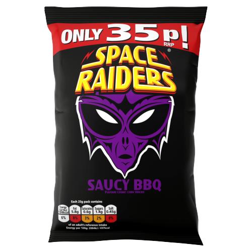 Space Raider Stats Species: Seared Reptus Home Planet: Scorchious Habitat: Volcanic Lava Pools Favourite Snack: Charcoal & Saucy BBQ Space Raiders Snacks can be enjoyed as part of a balanced diet and healthy lifestyle, including regular exercise.