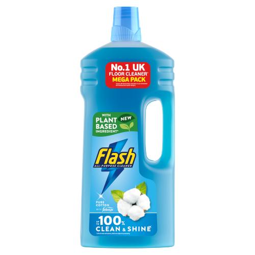 Flash Floor Liquid Cleaner removes up to 100% of dirt and grease. Leaves surfaces shiny thanks to its plant-based ingredient (12% of total surfactants, which are subject to processing) and fills your home with a delightful cotton scent.